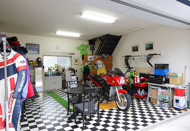 写真のようなガレージハウスがあったら、何台欲しいかな、といろいろ考えたけど結局1台だと思う。 広く浅くというより一つを大事に乗るタイプのようなので。 空いてるスペースはメインテナンス用の器具や道具を置きたいな。
