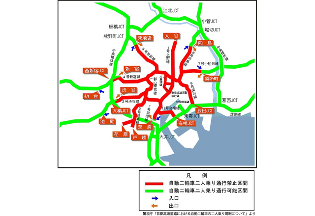 東京都内の首都高速道路の一部は、バイクの二人乗り規制区間があります。道路事情・交通事情などが理由と考えられますが、この規制についてご意見をお聞かせください。