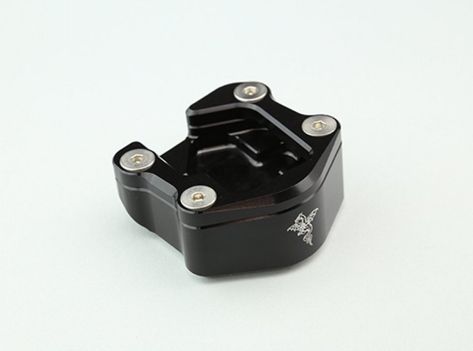 サイドスタンドの先端に取付けるだけで、サイドスタンド使用時に車体の傾きを穏やかにして、引き起こしを楽にしてくれます。