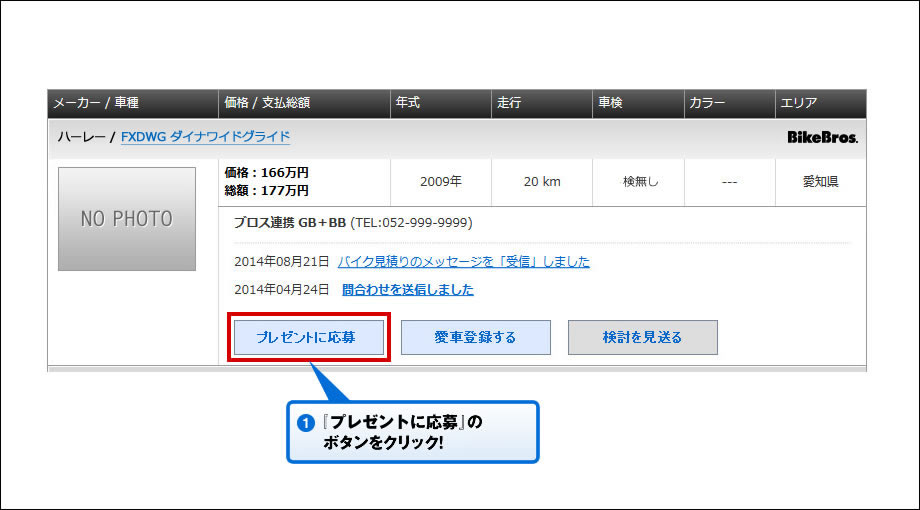 ●Myバイクサーチから応募