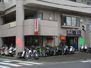 この看板が目印です。外にもバイクが展示してありますし、交差点の角という目につきやすい場所にお店があります。気軽に店内をご覧下さい。