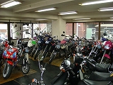 店内にはスポーツ、ネイキッド、アメリカン、オフロードと一通りの車種を揃えてあります。気に入った車輌があったら、声をかけて下さいね!