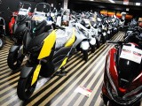 4FBIGスクーター展示フロア。ホンダ、ヤマハ、スズキを中心に国内ブランドを一堂展示しております。