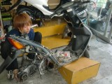 室内でメンテナンス作業するために雨でもバイクを表に出しております。